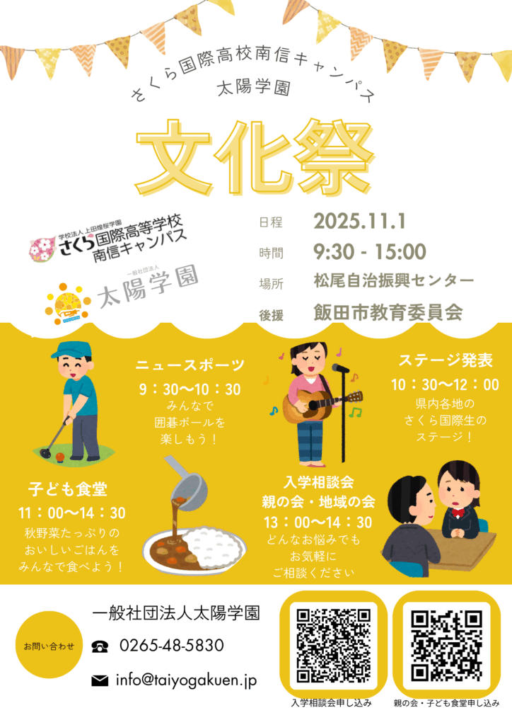 太陽学園伊賀良校は太陽学園(フリースクール・アフタースクール)や、さくら国際高等学校南信キャンパスに通学していない方のご参加大歓迎です!