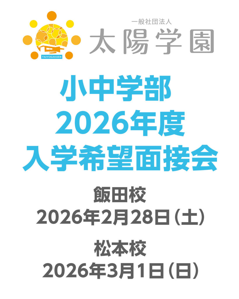 太陽学園伊賀良校は太陽学園(フリースクール・アフタースクール)や、さくら国際高等学校南信キャンパスに通学していない方のご参加大歓迎です!